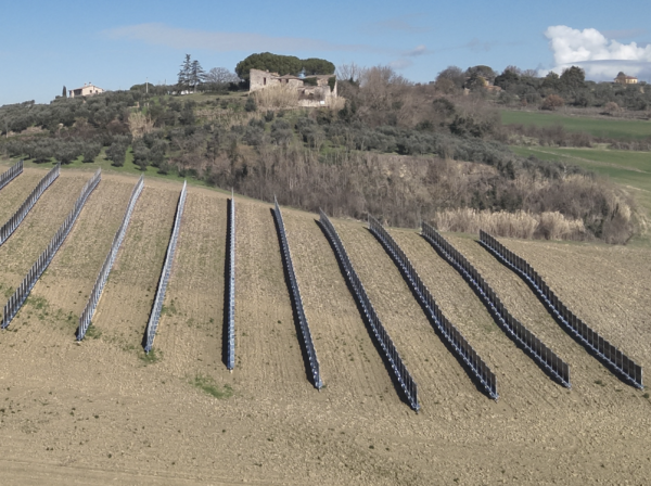 - Pannelli bifacciali verticali con orientamento est-ovest